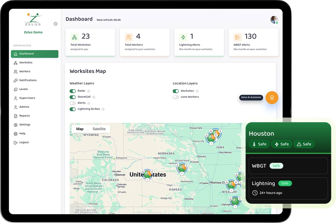 Zelus AI reviews your worksites, alerts, and conditions to help you understand risks in realtime and in the future.